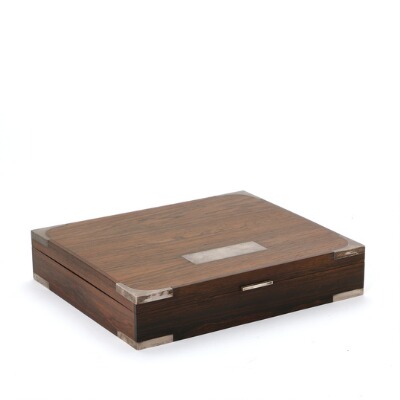 A large rectangular Bazilian rosewood box with sterling silver inlays