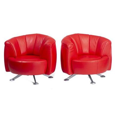 Hugo de Ruiter, two round swivel chairs from Sède, model DS-164, in red leather with 4 gray powder coated feet