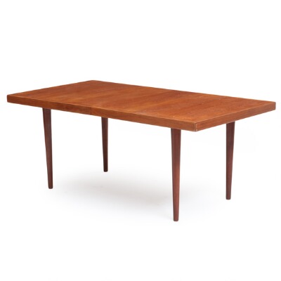 A rectangular teak extension table with one extra leaf