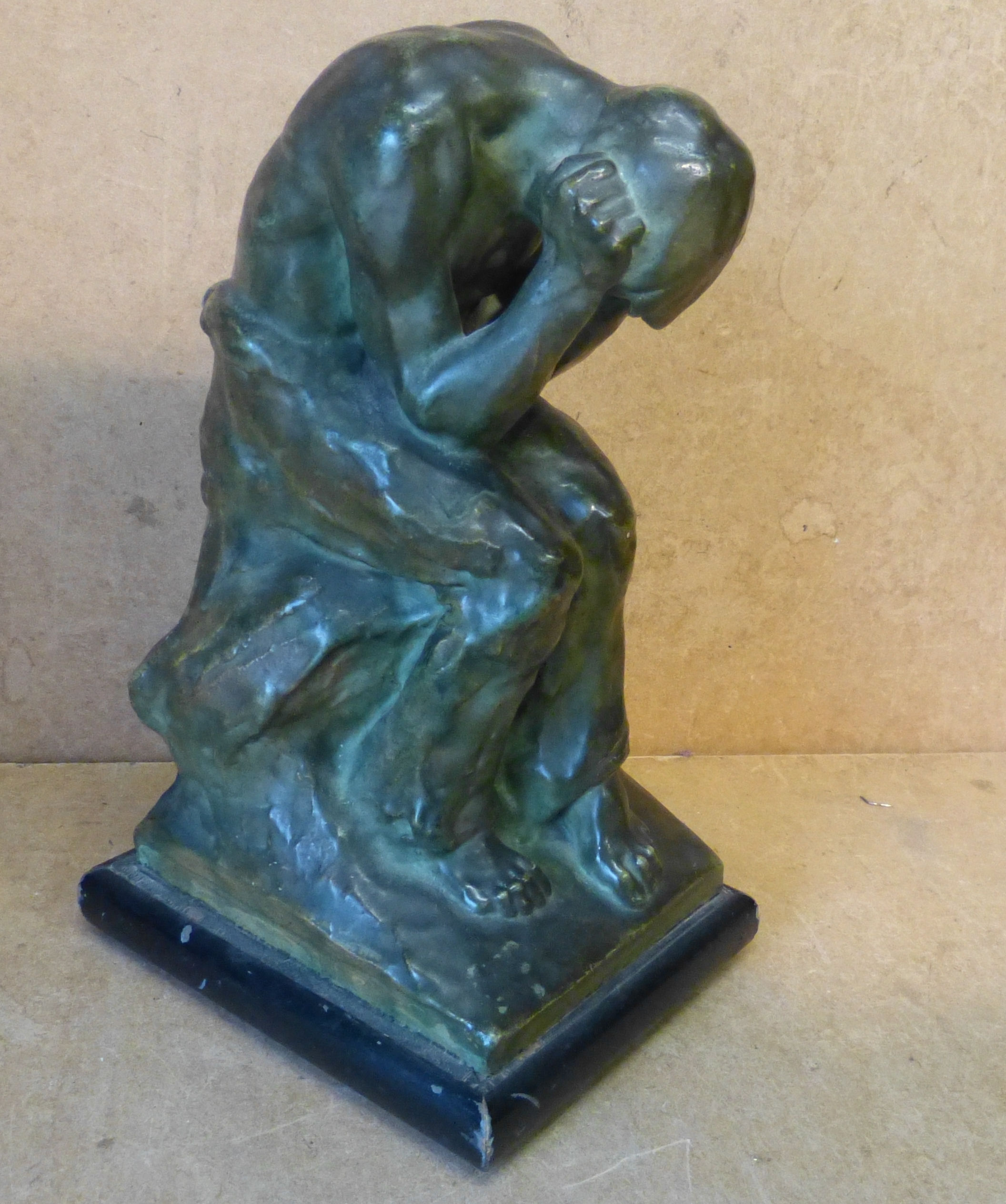 L Zorn Glazed Earthenware Figure of a seated gentleman holding head in hands on rectangular base