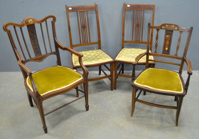 Lapworth Brothers & Harrison inlaid armchair and three other chairs
