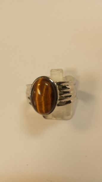 Large bague en argent ornée d'un cabochon d'œil de tigre
