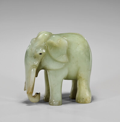 LARGE MUGHAL-STYLE CARVED JADE ELEPHANT