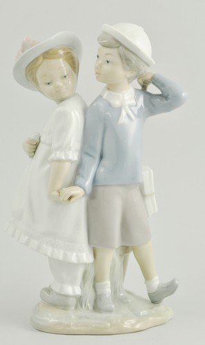 Lladro group of a boy and girl, ''hand in hand''
