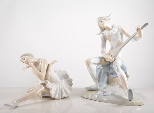 Lladro porcelain model L15F, Girl Singing, height 28cm, a Lladro porcelain model of a Ballet Dancer and Spanish porcelain model of a Harlequin (a.f.), (3).