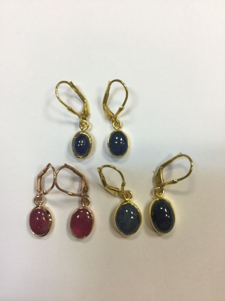 Lot de trois paires de boucles d'oreilles en vermeil agrémentés de saphirs, rubis et tanzanites