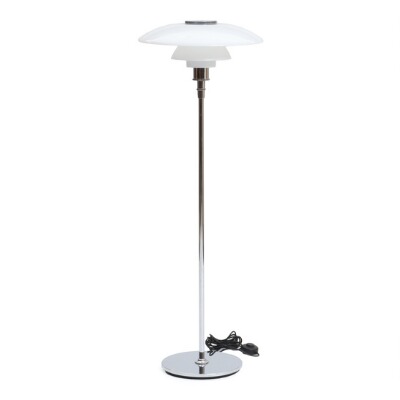 Floor lamp with chromed steel frame, multi-layer opal glass shades