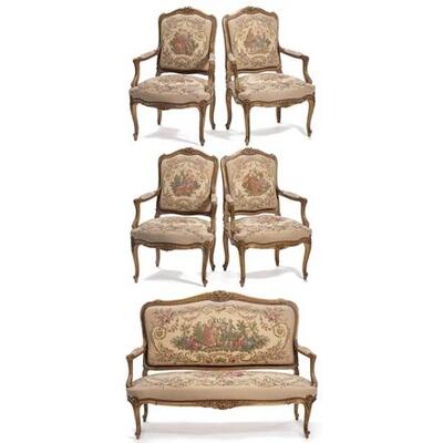 LOUIS XV STYLE LOUNGE WITH FOUR ARMCHAIRS AND A SOFA