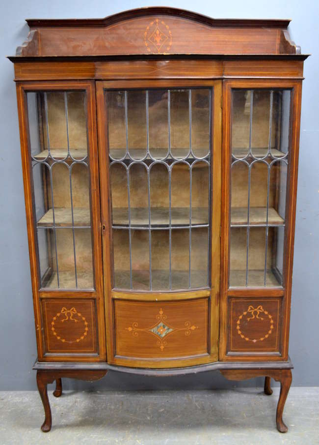 Mahogany bowfront display cabinet with lead glazed door