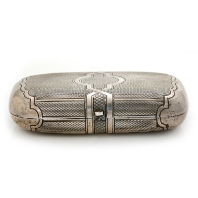 A Russian silver case, gilt interior, engraved with geometric pattern