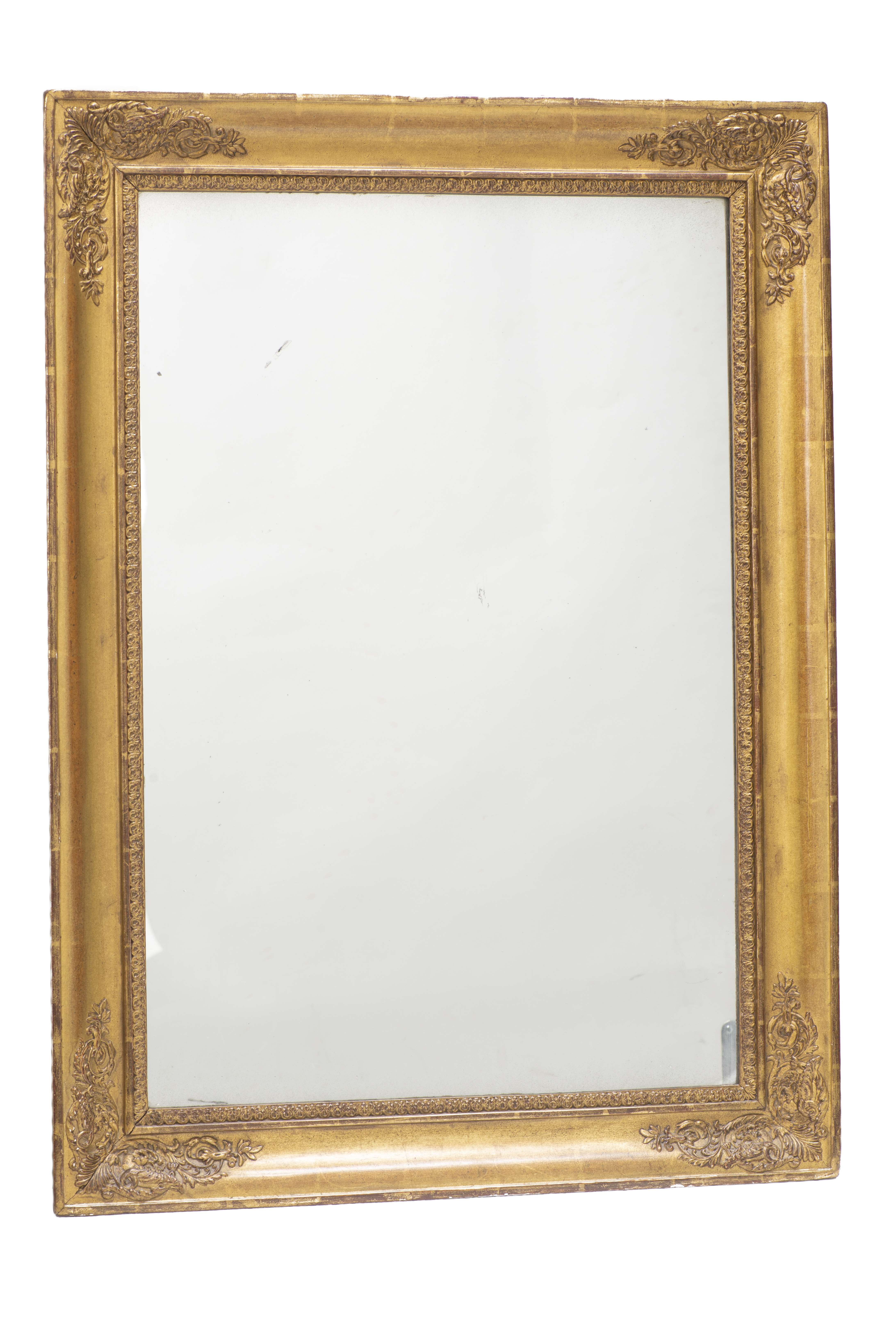 Miroir rectangulaire second Empire à cadre en bois et stuc doré et glace au mercure.