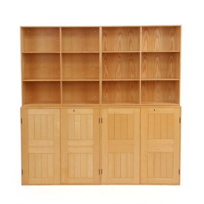 Wall unit of ash, consisting of two cabinets and two bookcases