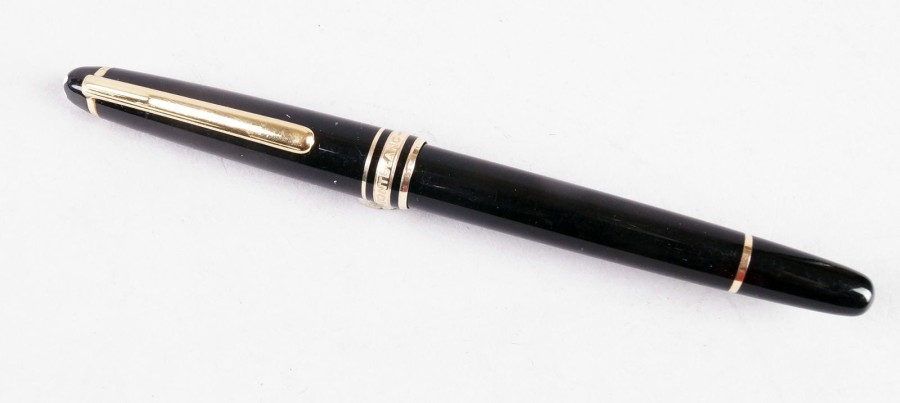 STYLO BILLE modèle «Meisterstück» en résine et plaqué or. Porte la réf. MC 156515. H.: 13,5 cm