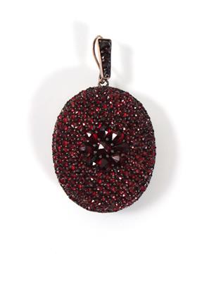 Metal, grenades, glazed rear hinged lid, height: 38 mm (without lifting eye), the end of the 19th century., 17.5 g, two stones missing