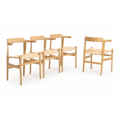 A set of four chairs with oak frame, seats covered with woven papercord