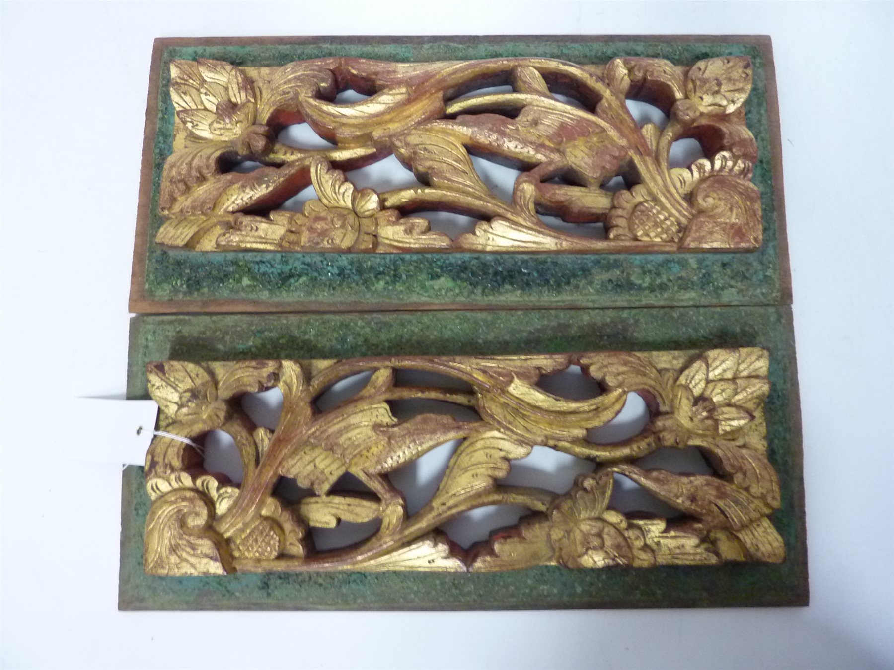 Pair late 19th/early 20th century Chinese carved wood Peranakan wedding bed panels decorated with birds