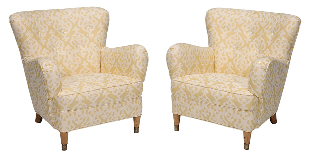 Pair Mid-Century Modern Upholstered Tub Chairs