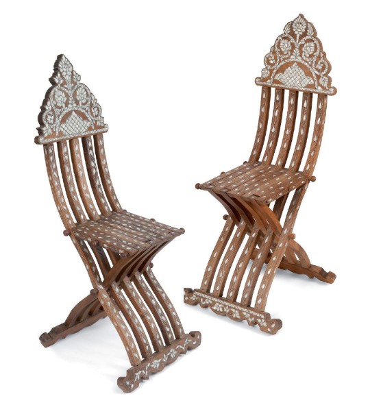 PAIR OF ARTICULATED CHAIRS PATINATED WOOD