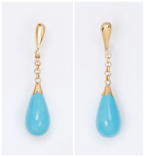 Pair of pendants in yellow gold adorned each with a drop of turquoise tassel in restraint. P. 3.2 g
