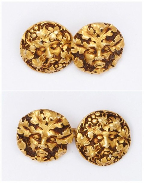 Pair of yellow gold cufflinks engraved decorated with masks and foliage. P. 1920. 20,7g