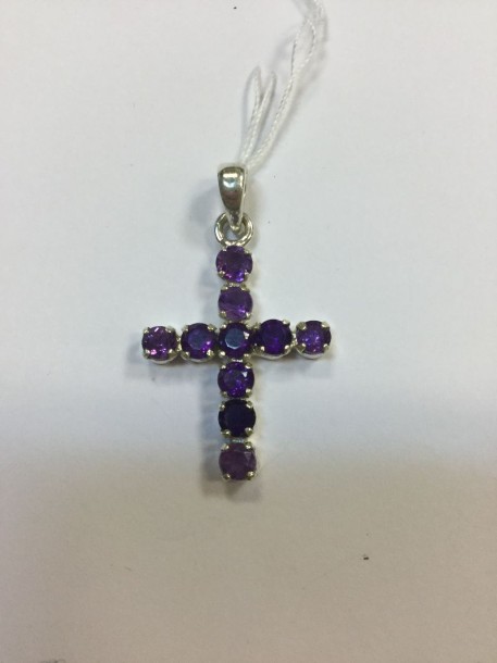 Pendentif en argent à motif de croix pavée d'améthystes. Brut : 2,71 g