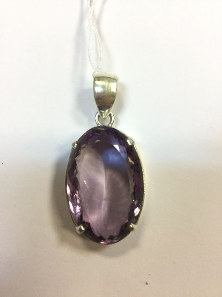 Pendentif en argent orné d'une importante améthyste ovale facettée