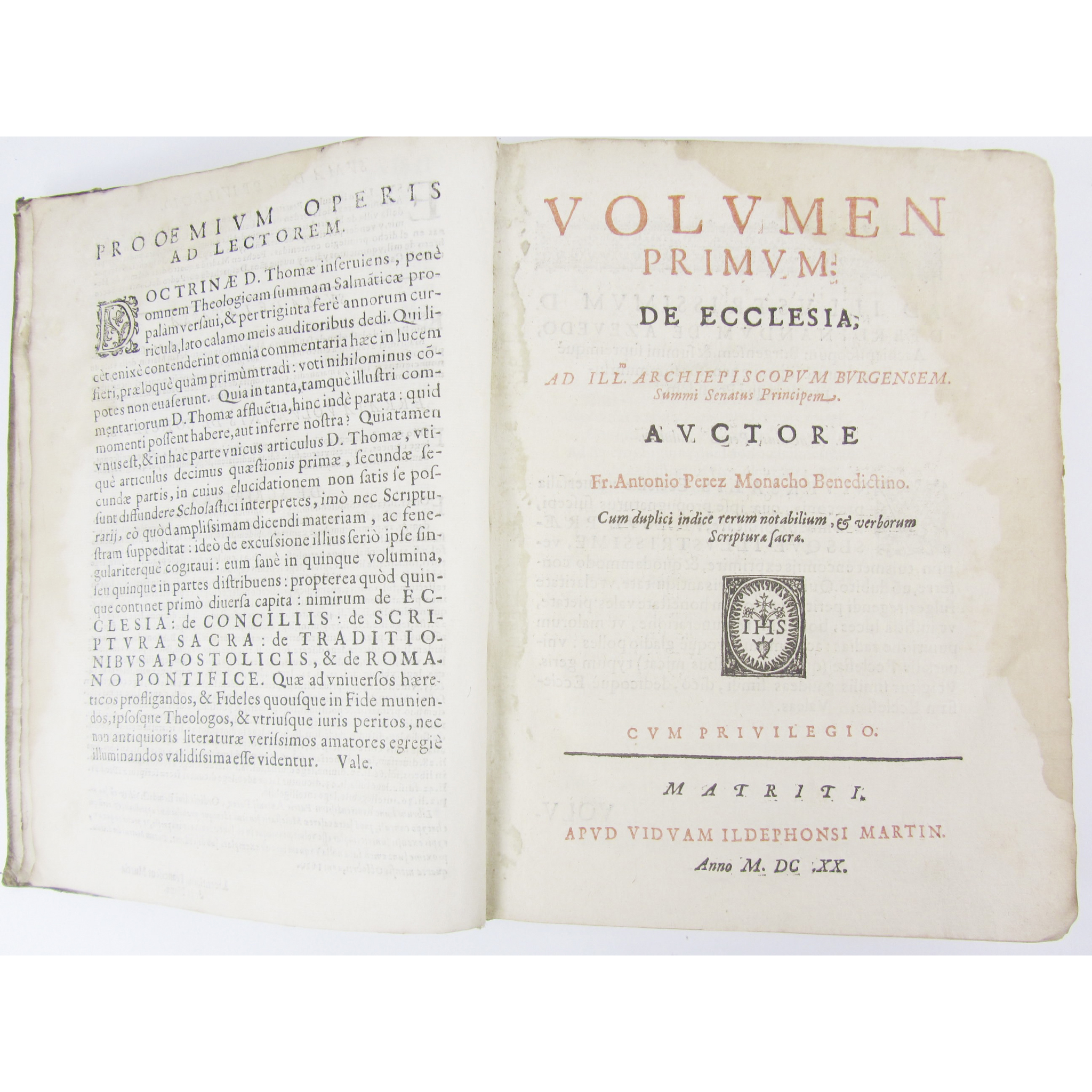 Pentateuchum fidei, sive volumina quinque. Madrid: Ildephonsi Martin, 1620. Folio, 5 volumes in one, titles printed in red and black, ?vol. V lacks 2ff. at end (?blank), 2L5 small tear slightly affecting text, without loss, browned and water-stained,