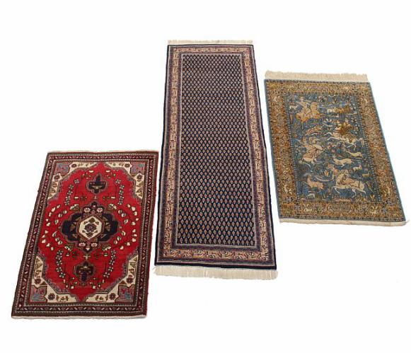 Persian rug, runner and Pakistani hunting rug, classic design with repeating pattern, ornamentation, hunting scene
