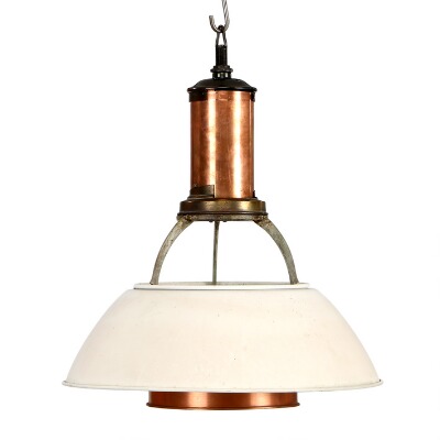 White lacquered aluminum middle-shade, bottomshade copper.