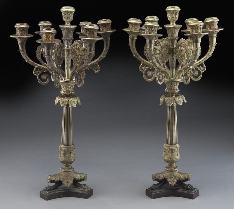 Pr. 7-light Belle Epoque gilt bronze candelabra, Circa 1900