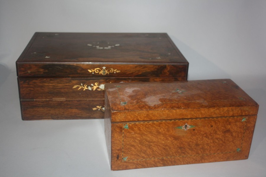 Pretty writing set in rosewood inlaid with brass, mother-of-pearl and bone decorated with flowered fountain, flowers and dolphins.