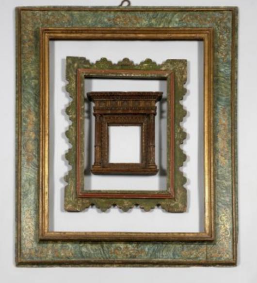 Rare cadre en tilleul mouluré, doré et rechampi faux marbre vert, dit 'a cassetta'