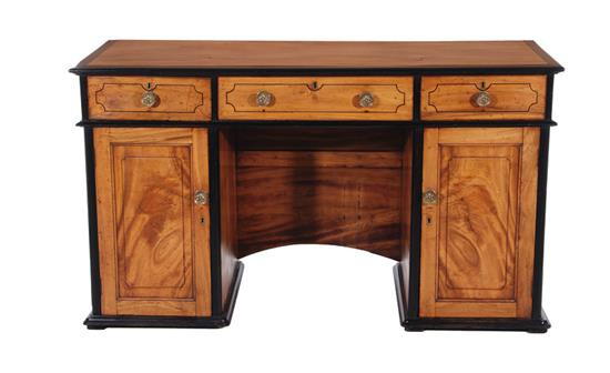 Rare Colonial Late Regency mahogany pedestal sideboard early 19th century, ebonized crossbanded top, above drawers, panel doors and molded base; H37" W64" D24"