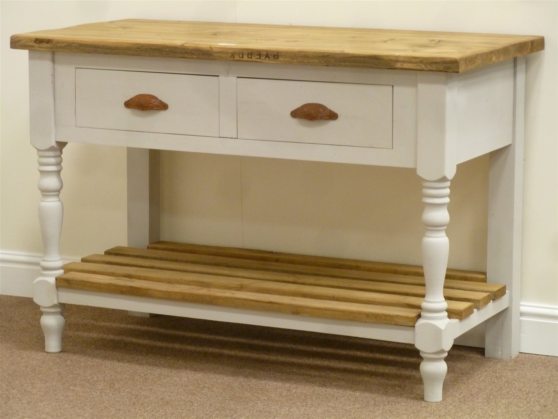 Reclaimed waxed pine two drawer dresser on painted pot board base