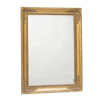 Rectangular second Empire mirror with wooden frame and gold stucco and mercury ice.