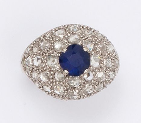 and decorated in the center with a sapphire faceted. 1930. Ring size: 53. P. 7g