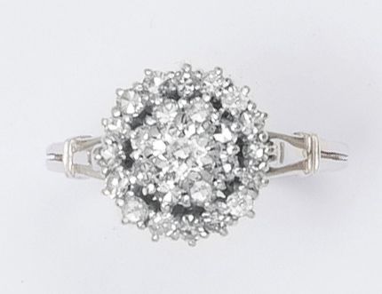 Ring "flower" white gold adorned with brilliant-cut diamonds including one in the center most important. Ring size: 58. P. 5 g