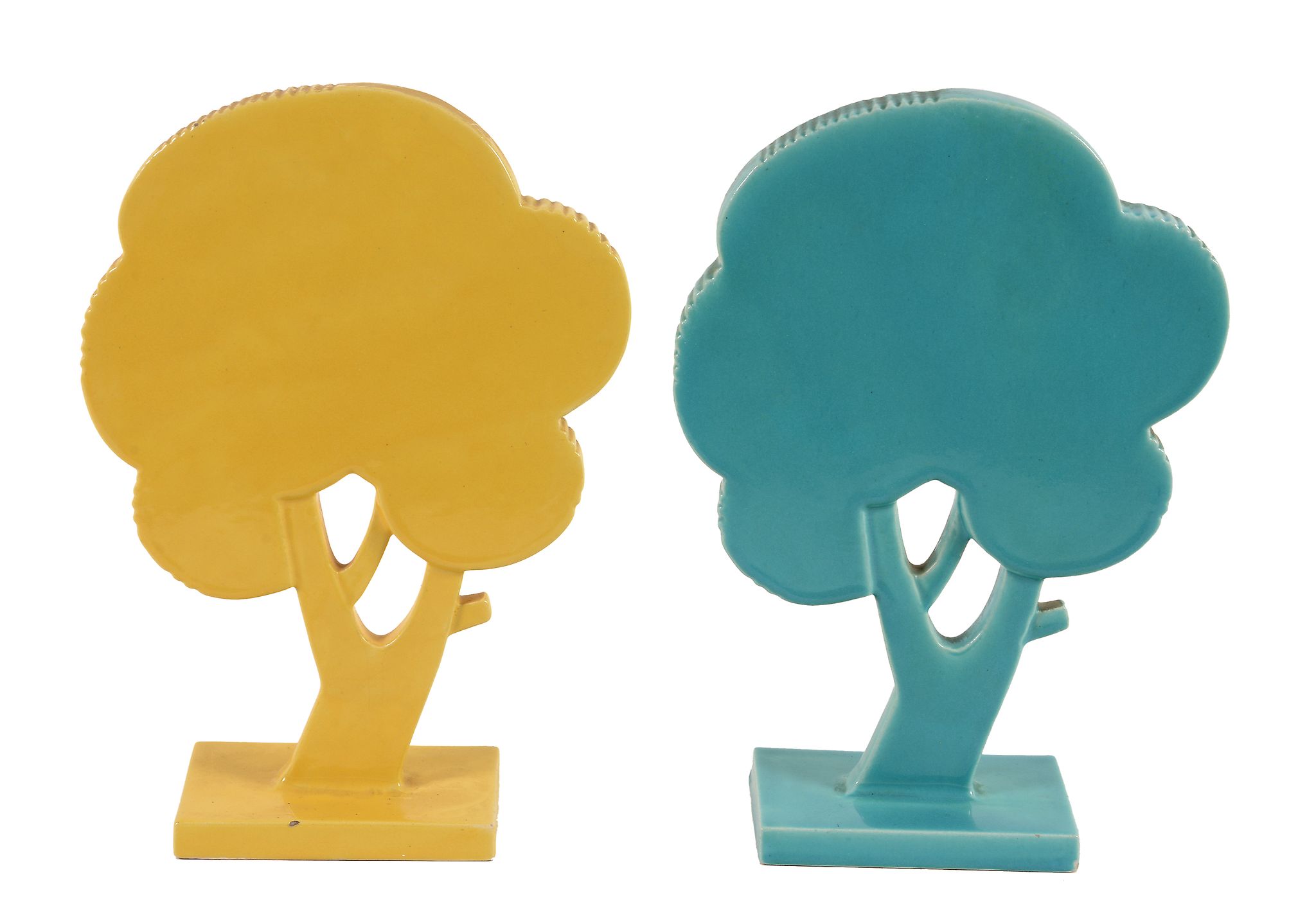 overall yellow or turquoise glazed, painted marks, 28cm high; and a yellow glazed oblong vase, painted mark and a paper label for Waring Modern Art and a price of 27/6, 24cm high (the last cracked) (3)
