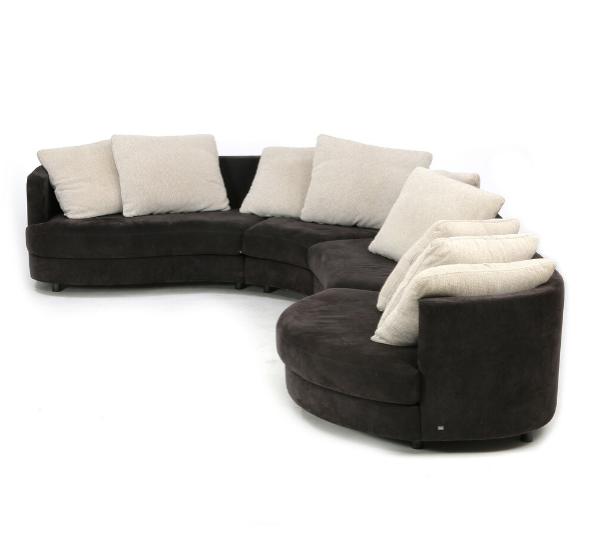 Back, sides and seat upholstered with dark grey alcantara. Including nine pillows upholstered with grey speckled wool blend