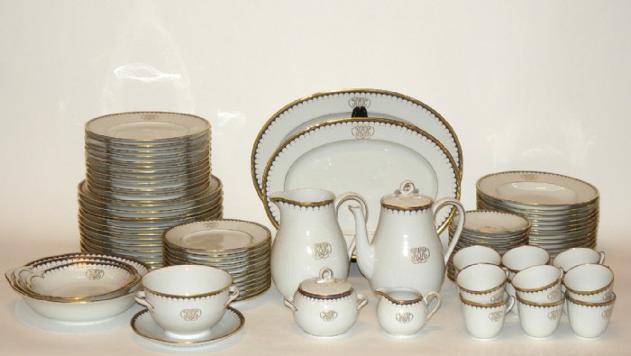 'Swedish monogram tableware', 70 parts. Louise Adelborg and Jacqueline Lynd