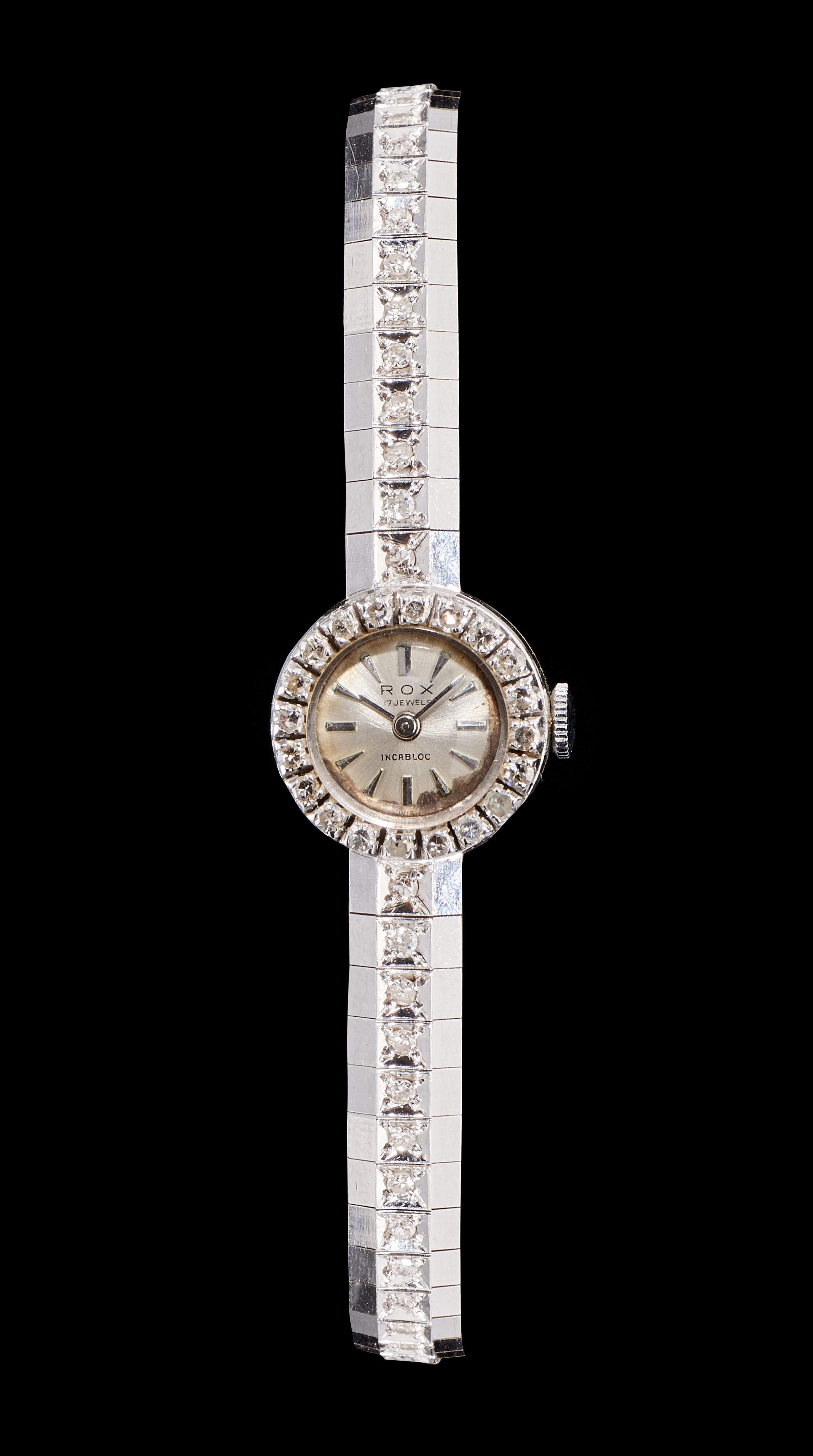 Dial, hour markers and silver hands, bracelet entirely set with diamonds, 750 white gold, D 15 mm, gross weight 24 g
