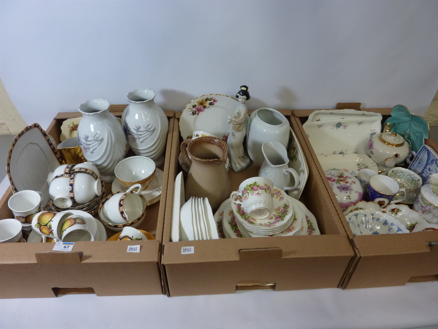 Royal Albert part tea set, Meakin tea set, and other decorative ceramics in three boxes