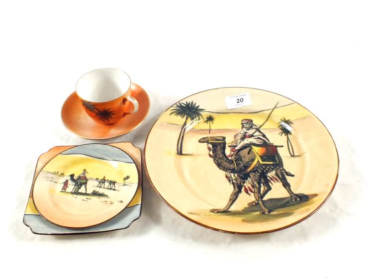 Royal Doulton desert scene plates and a Noritake cup and saucer
