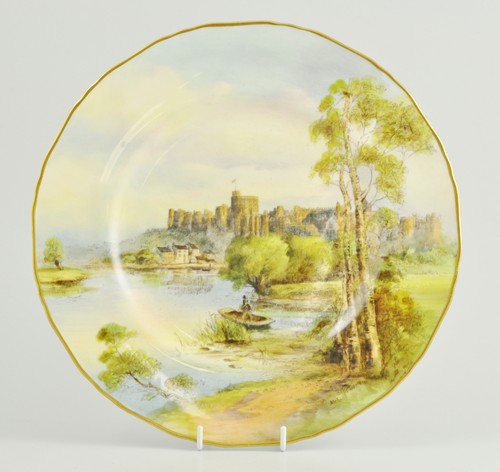 Royal Worcester cabinet plate, hand painted with views off Windsor Castle to a gilt border
