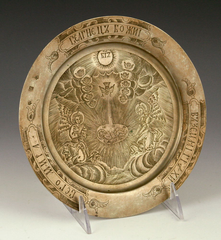 Russian or Greek tazza, heavily engraved silver, indistinct hallmarks