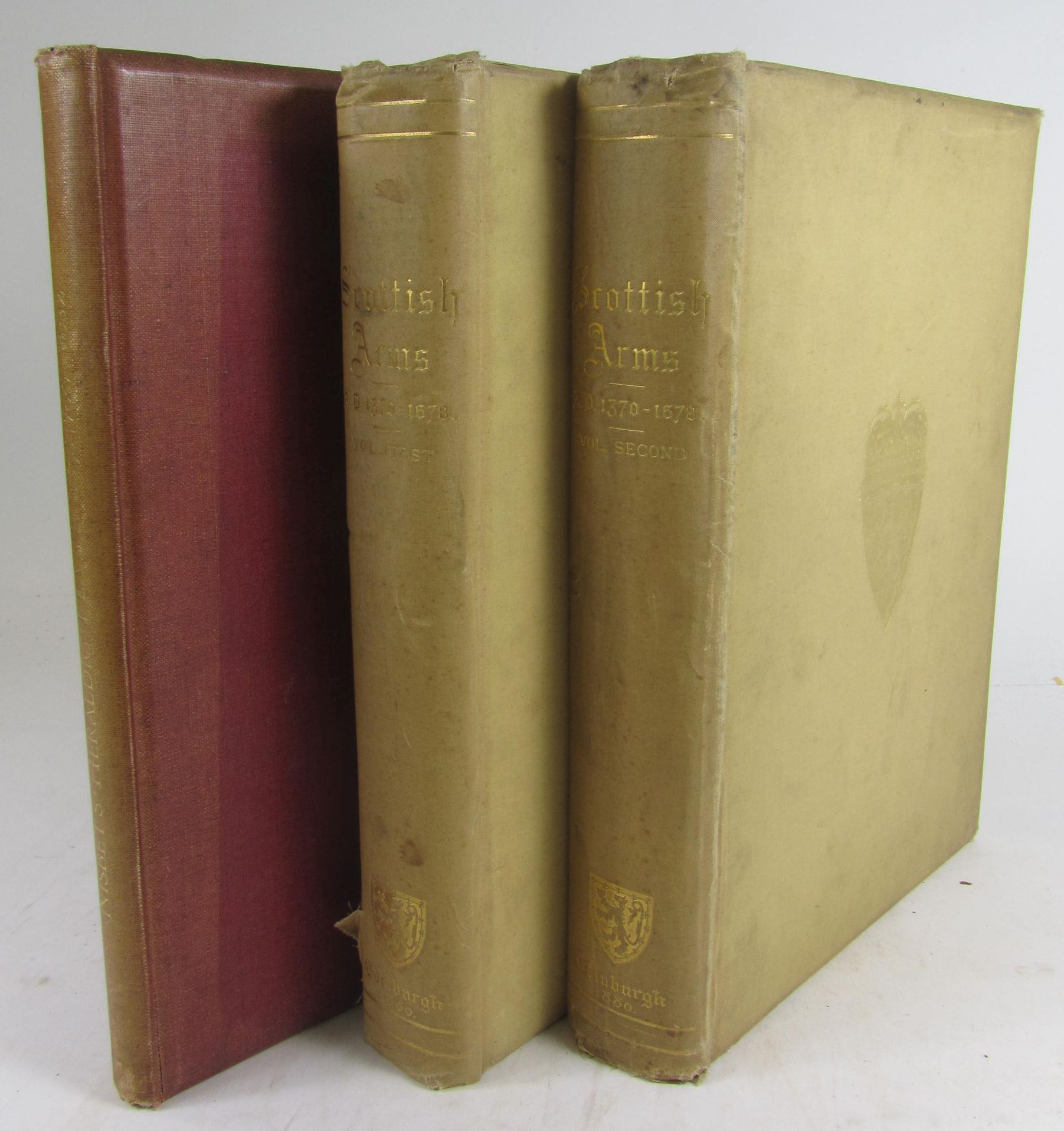 Heraldic plates originally intended for his "System of Heraldry". Edinburgh, 1892. Folio, number 41 of 200 copies, plates, original pictorial red buckram gilt, t.e.g., faded; Stoddart, R.R. Scottish arms, being a collection of armorial bearings 1370-