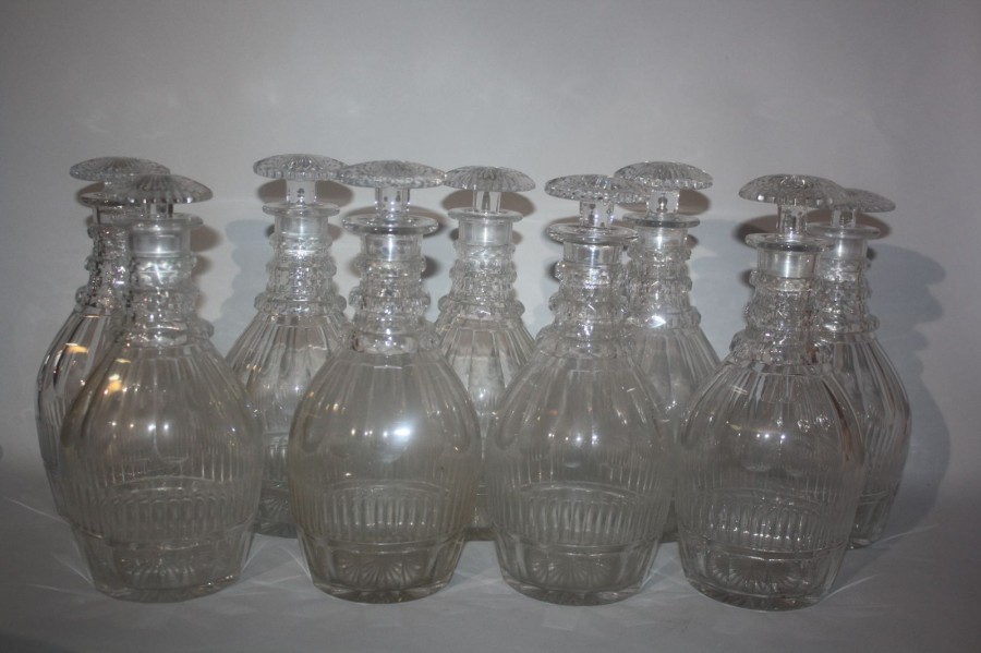 Set of nine carafes in balustrade shape in crystal cut with their caps.
