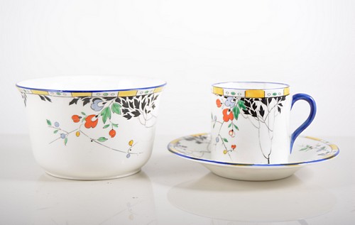 Set of Shelley bone china coffee cans and saucers and sugar bowl No. 11602, (a.f.).