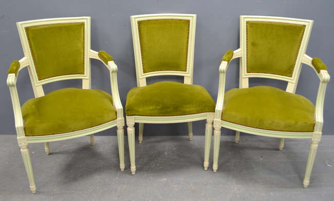 Set of twelve white painted and green upholstered dining chairs (10+2)