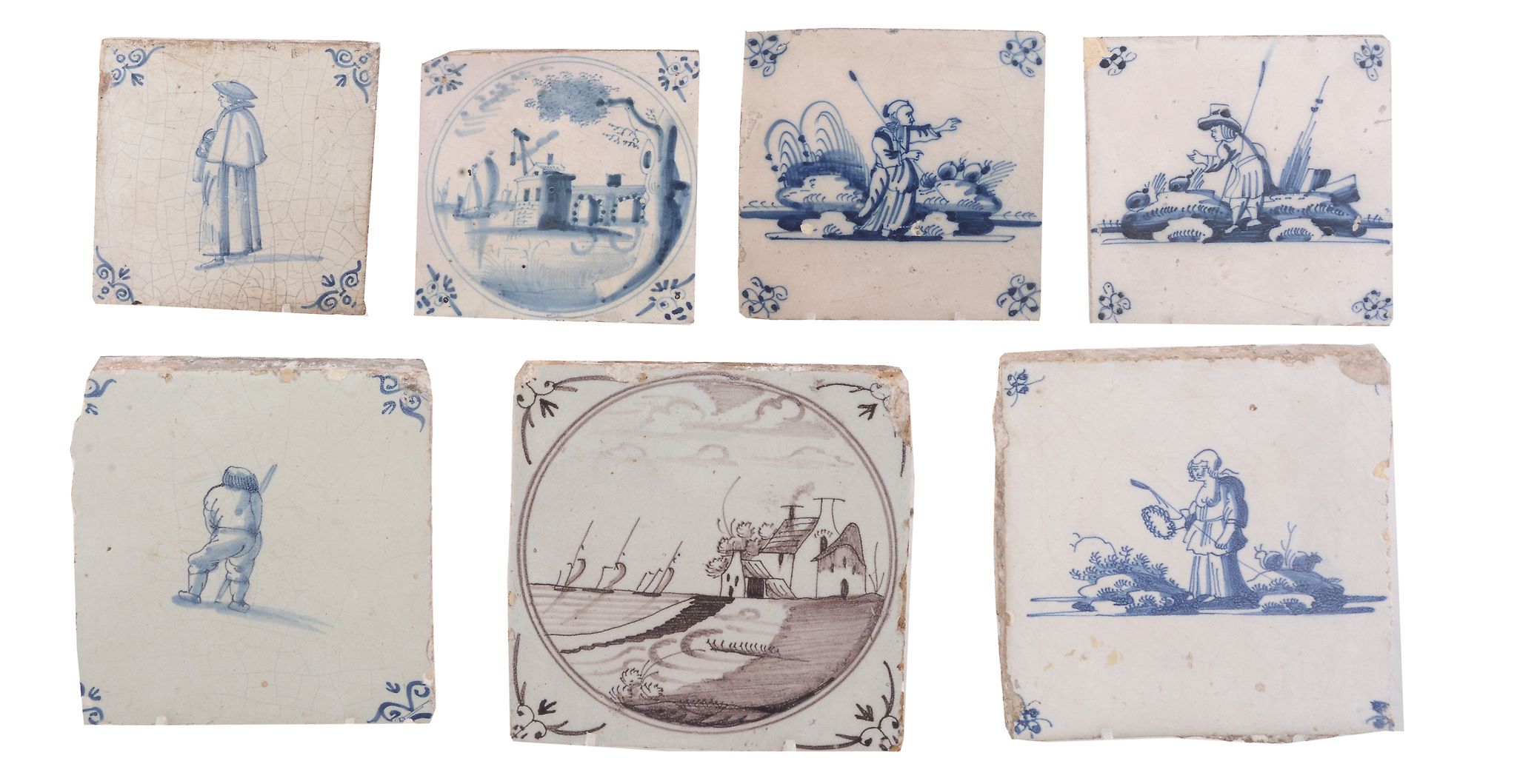 Seven various Dutch and English delft tiles